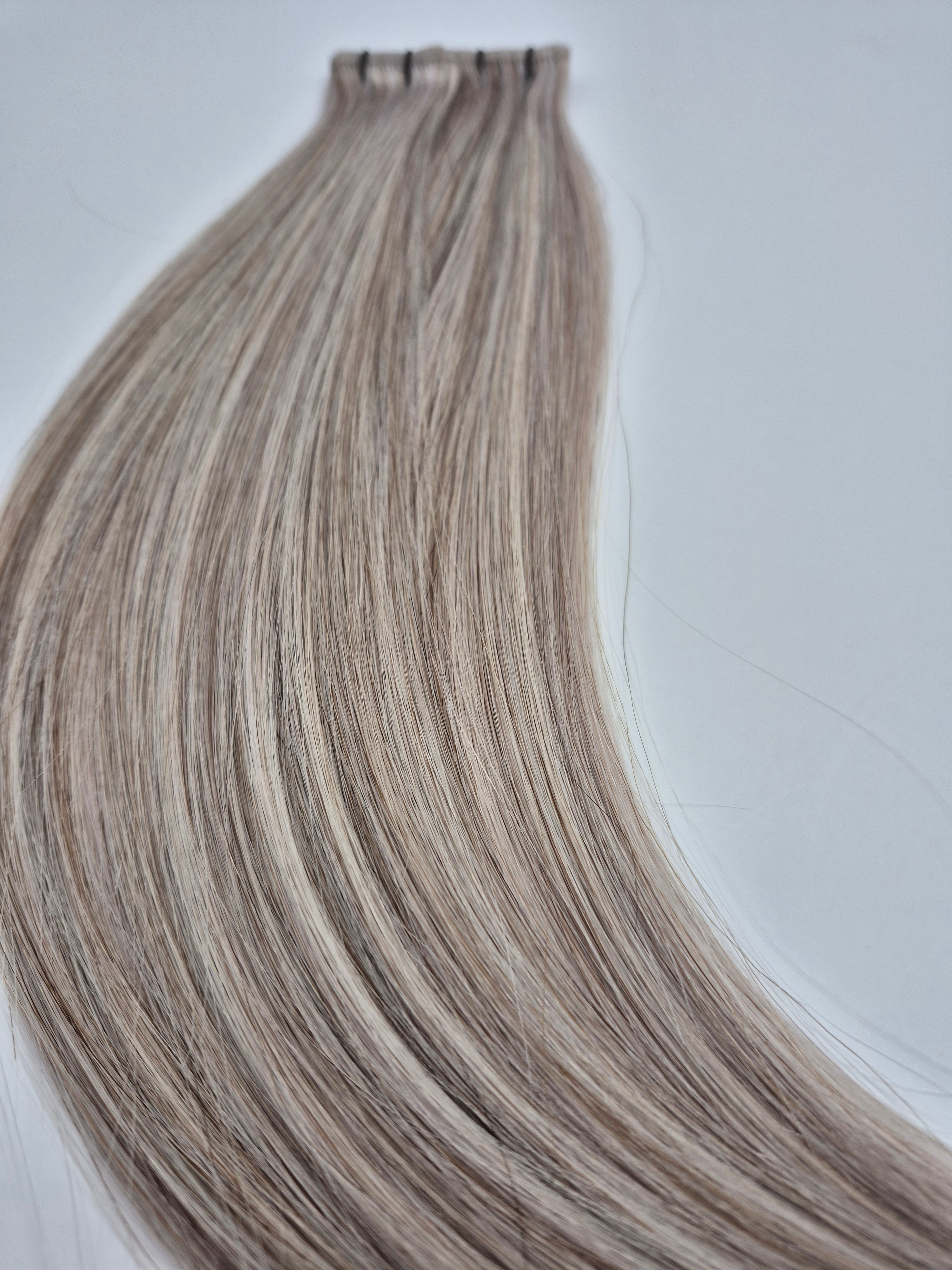 Genius wefts - Genius wefts lay super flat to the head, creating a seamless blend. Almost all Wefts have been custom rooted, this will save you an incredible amount of time during installs. Because most of our wefts have been custom rooted, this means the weft lines have been darkened. This allows you to darken down your roots and still be able to have a seamless weft line.