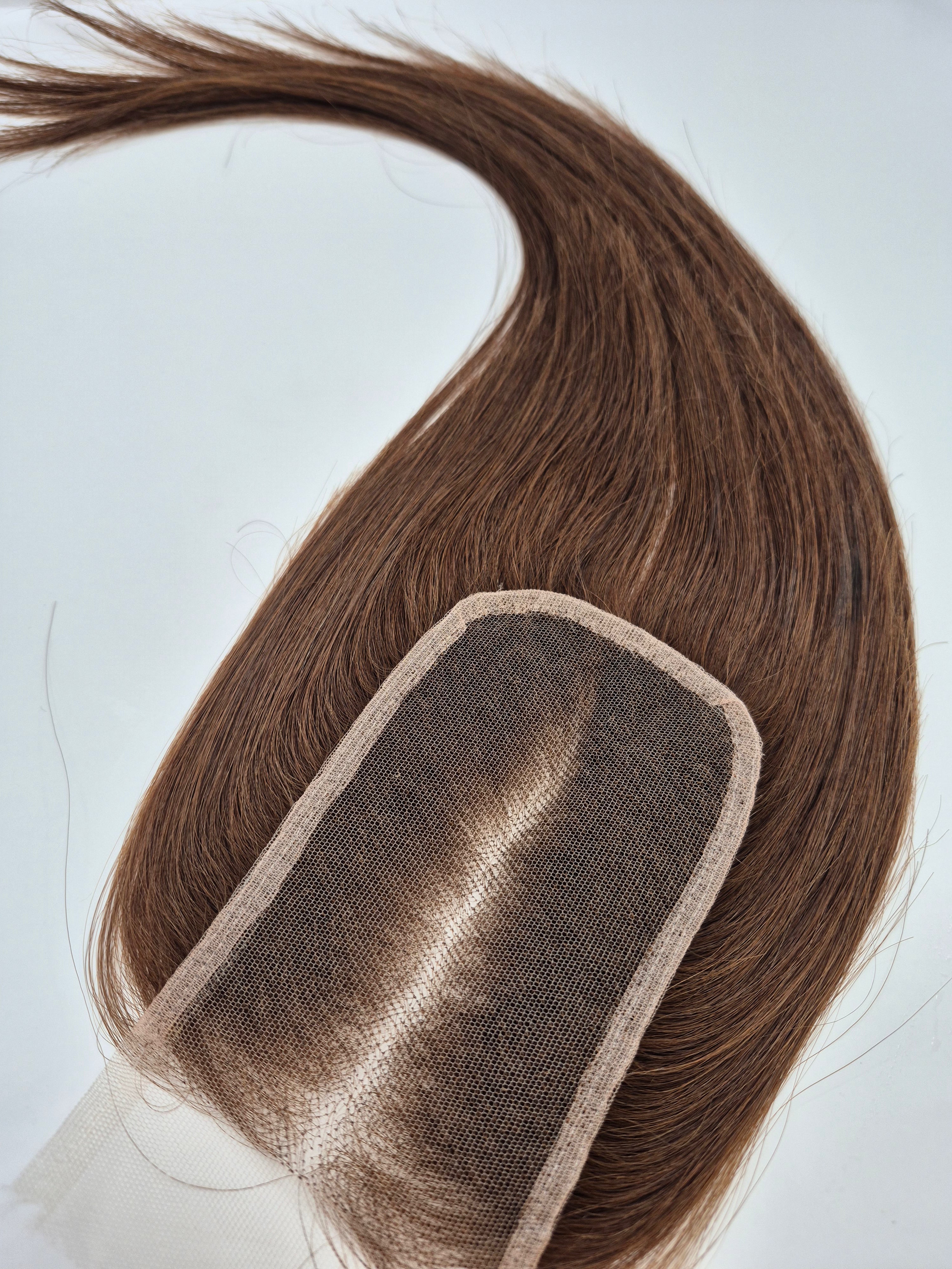 Our mesh closures are designed to last around three months and are crafted with a low-density finish to blend seamlessly with your client's natural hair- never bulky or wig-like. Each piece measures 3x5 and weighs 35g, offering a realistic look and lightweight feel. Some darker shades feature bleached knots ,while lighter tones are left unbleached for a softer, more natural appearance.