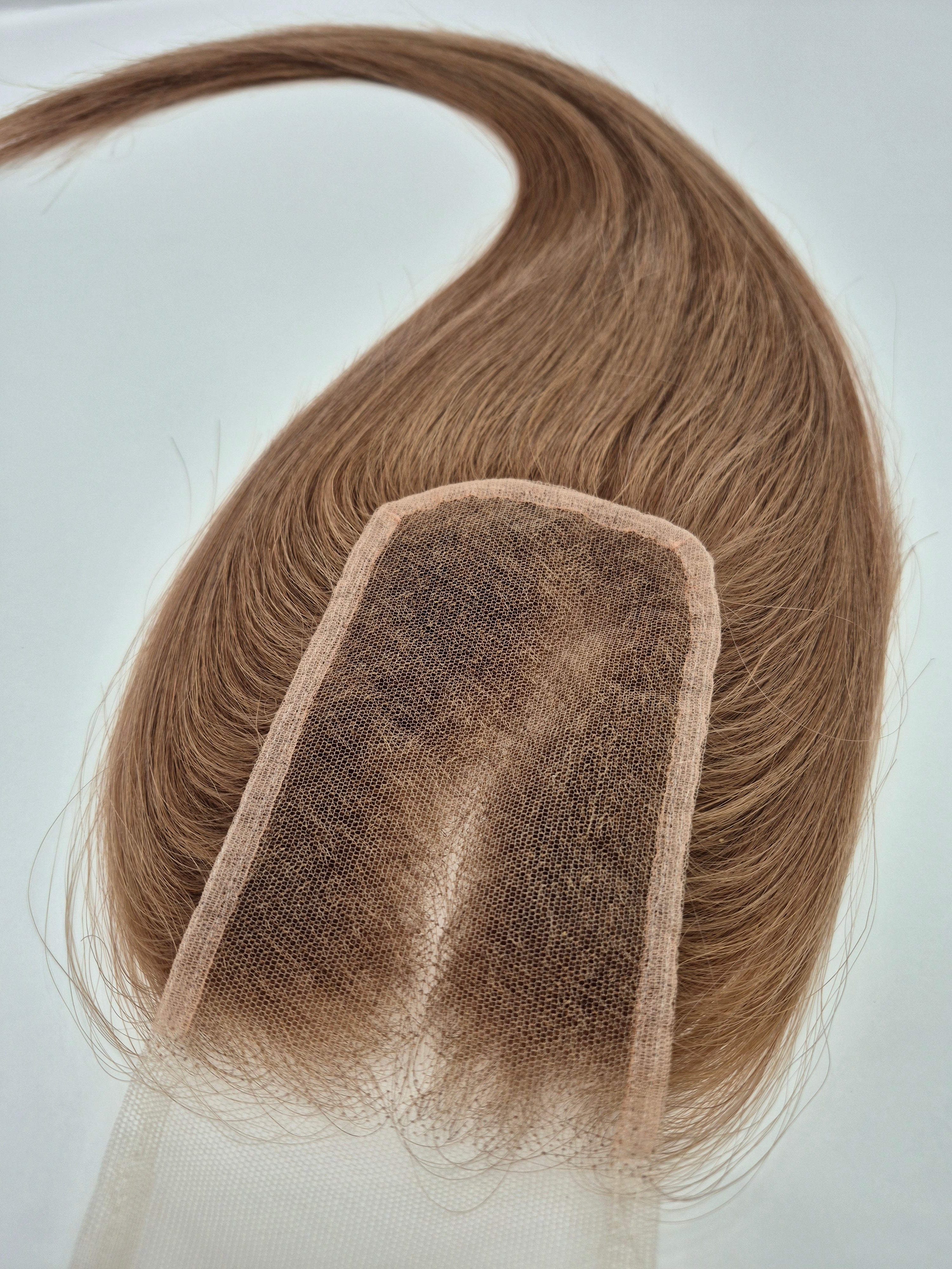 Our mesh closures are designed to last around three months and are crafted with a low-density finish to blend seamlessly with your client's natural hair- never bulky or wig-like. Each piece measures 3x5 and weighs 35g, offering a realistic look and lightweight feel. Some darker shades feature bleached knots ,while lighter tones are left unbleached for a softer, more natural appearance.